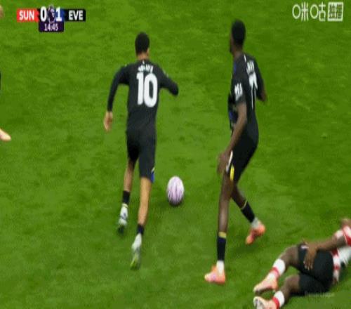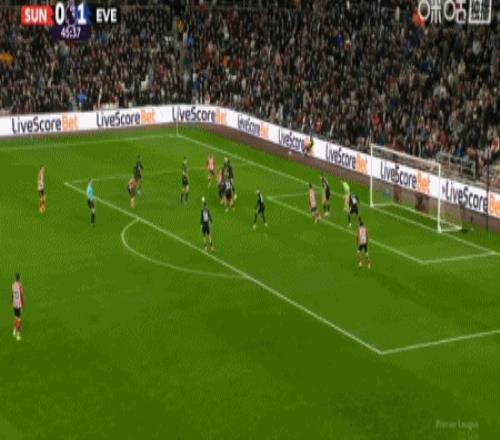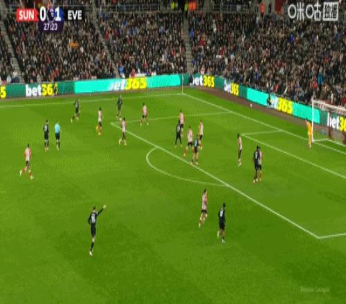 第15分钟,恩迪亚耶过掉三人晃开角度起脚破门,埃弗顿1-0桑德兰
