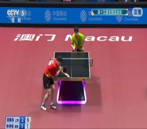 第三局樊振东强势开局打出7-1,11-5再度取得领先。