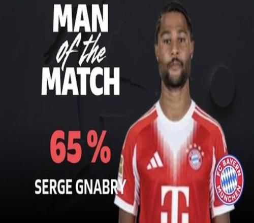 德甲第27轮,拜仁慕尼黑主场4-0大胜柏林联合,此役上演梅开二度的拜仁前锋格纳布里当选德甲官方全场最佳球员。